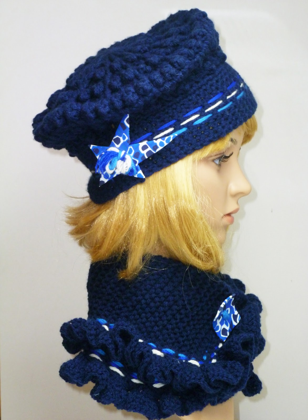 Encore un post de bonnets- foulards avec des boutons Fimo